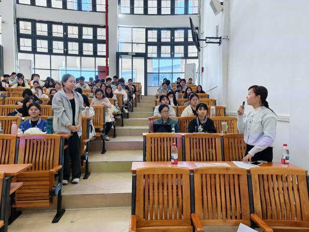 讲座在廖琳静副园长“向光而行,成光而立——学前教育专业成长的探索与实践”的主题分享中拉开帷幕。廖园长结合自身从师范生到幼教工作者的成长历程,阐述了“不忘初心”在职业发展中的核心意义,并剖析了新时代对幼儿教师提出的新要求。她通过分享自己在教育实践与科研中取得的成果,生动诠释了“终身学习”与“自我超越”的重要性,鼓励同学们“读万卷书,行万里路”,以宽广视野与扎实学识,努力“活成一束光,照亮后来者前行”。